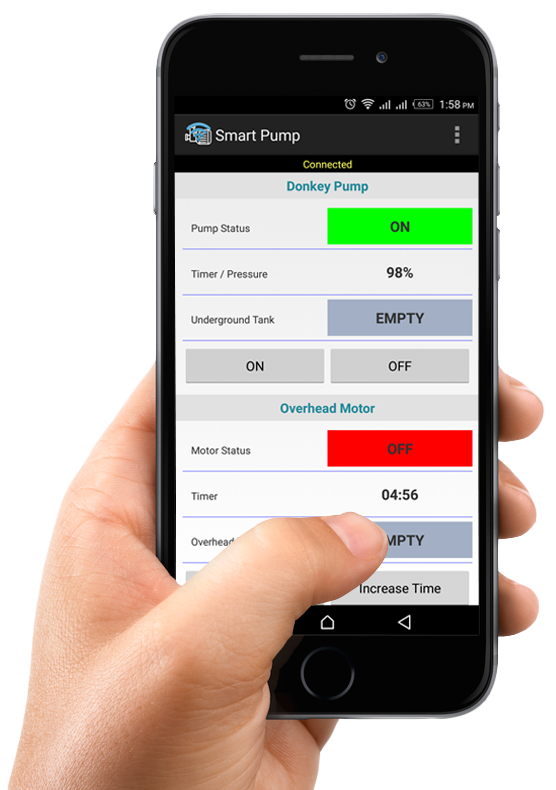 Mobile App allows users to turn ON and turn OFF pump at any time while sitting in house.